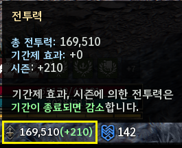 - 협력의 맹세 옆 전투력을 클릭하면, 시즌 효과로 상승한 전투력이 표시됩니다.