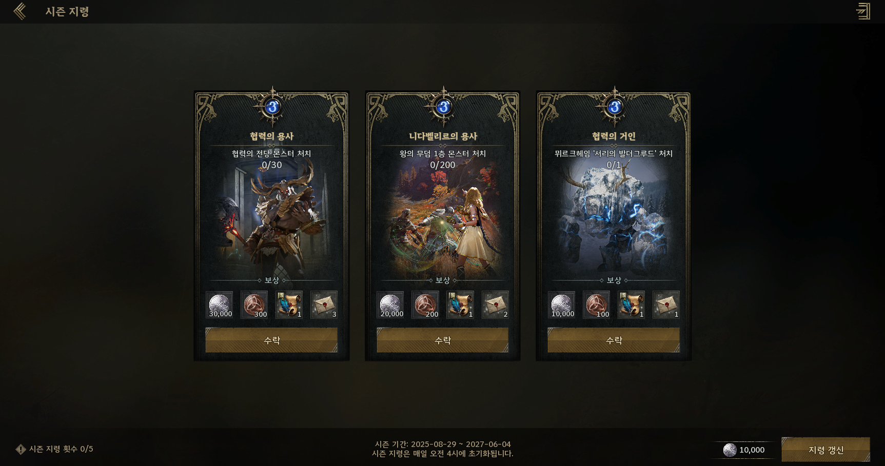 시즌 기간 획득할 수 있는 시즌 소환물을 수집하고, 협력의 맹세를 획득할 수 있습니다.