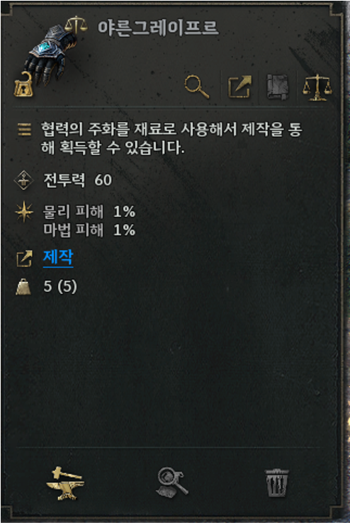 - 야른그레이프르는 [제작] > [협력의 주화]에서 제작할 수 있습니다.