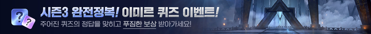 전사님들께서 시즌3를 더욱 깊이 이해하고 즐기실 수 있도록 ‘시즌3 완전 정복! 이미르 퀴즈 이벤트’가 진행됩니다.