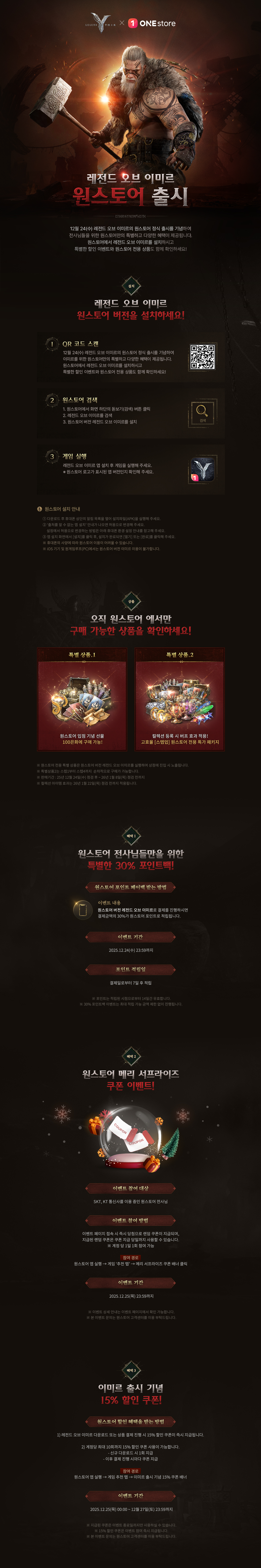 12월 24일(수) 오후 1시경, 레전드 오브 이미르 원스토어 버전이 정식 오픈되었습니다.