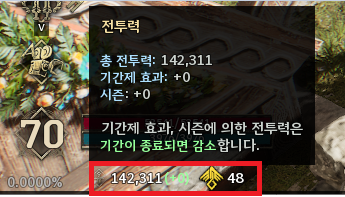 - 풍요의 숨결 옆 전투력을 클릭하면, 시즌 효과로 상승한 전투력이 표시됩니다.