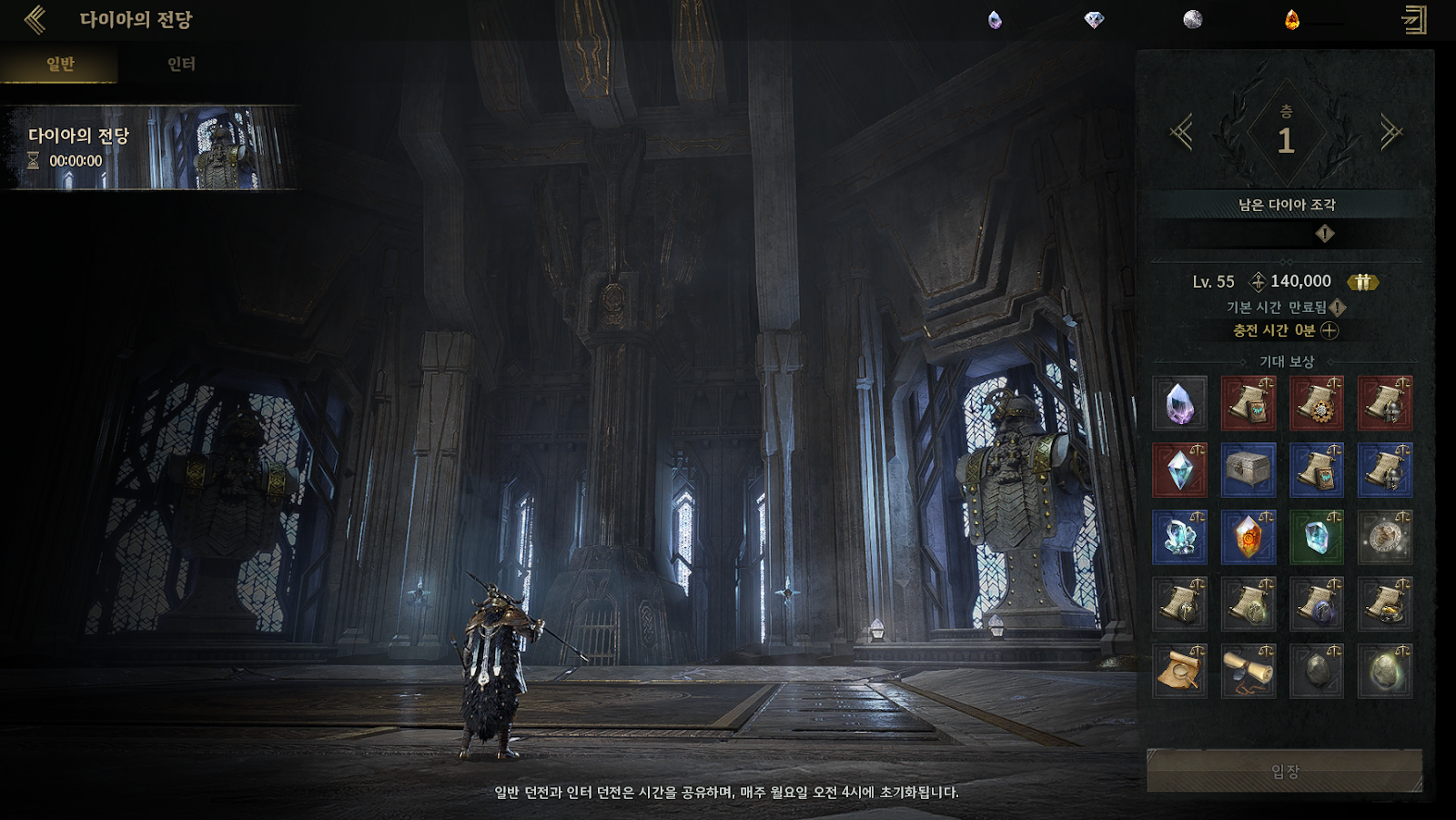 - 다이아의 전당은 4층으로 구성되며, 일반/인터 사냥터로 구분됩니다.