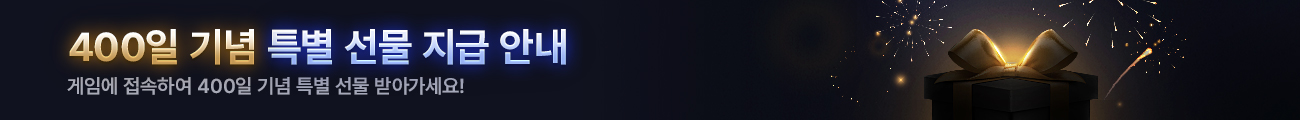 - 이벤트 내용: 이벤트 기간 내 게임에 접속 시 400일 기념 특별 선물이 우편함으로 지급됩니다.