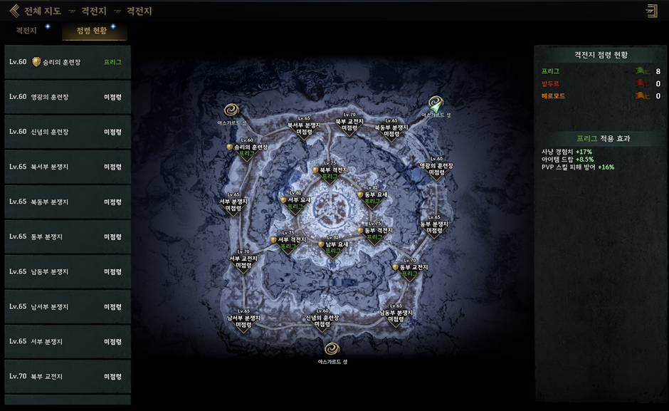 ㆍ[시즌 지역점령] 격전지에서 서버별 점령한 지역의 숫자에 따라 점령의 축복 버프가 부여됩니다.