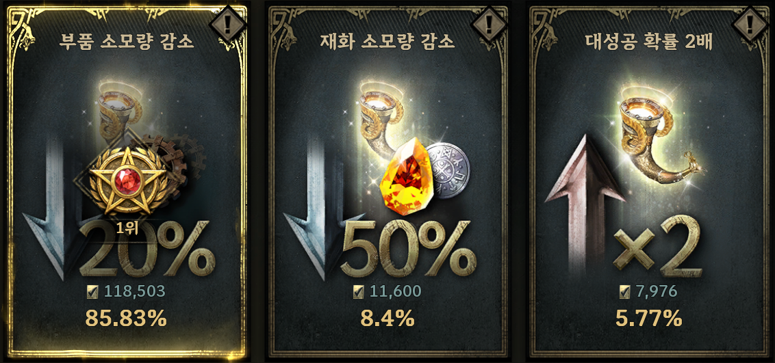 ㆍ[투표 결과 반영] 호른 제작 시 부품 소모량 20% 감소가 적용됩니다.