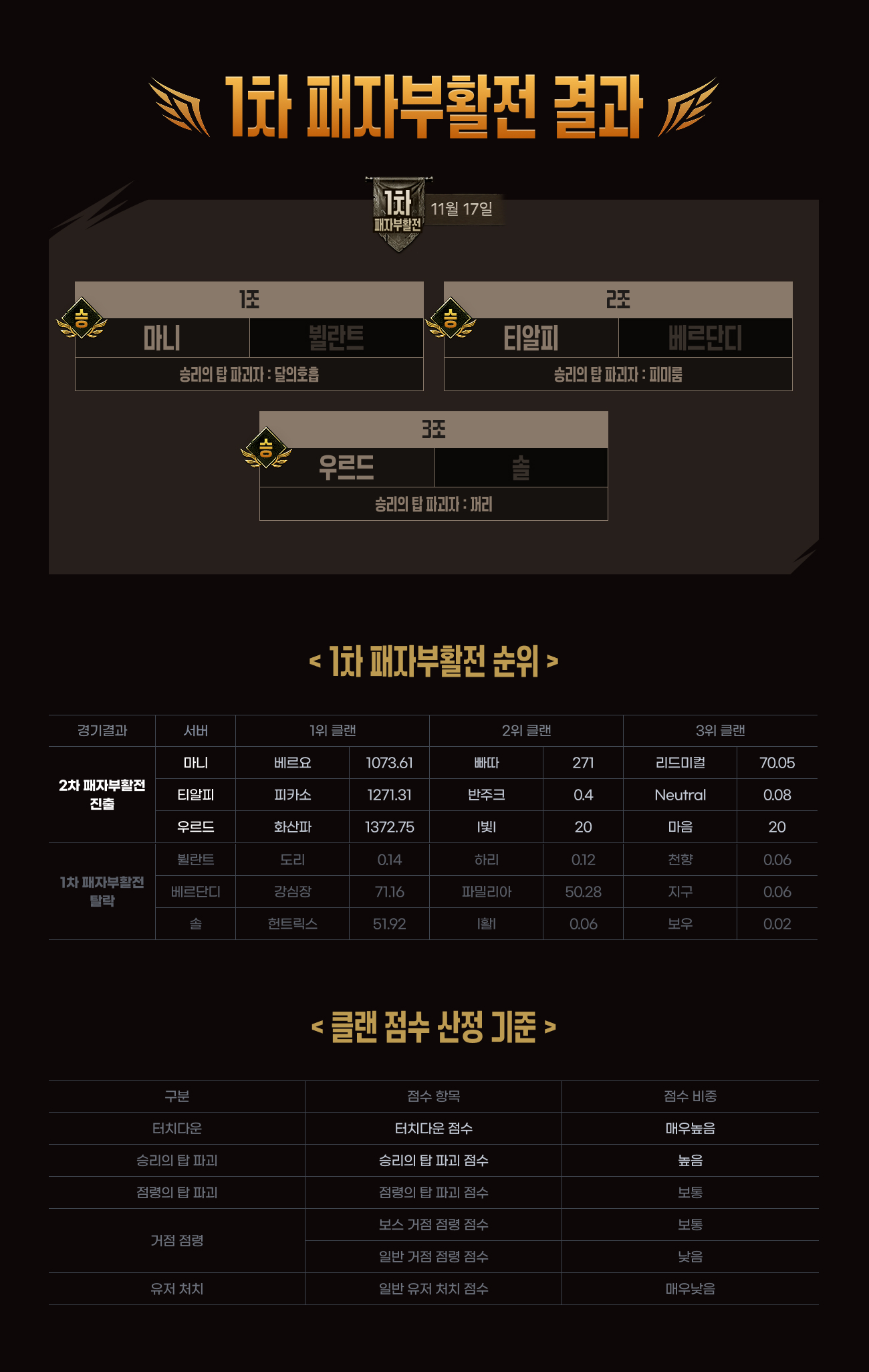 11월 17일(월) 제2회 이미르컵 1차 패자부활전 결과