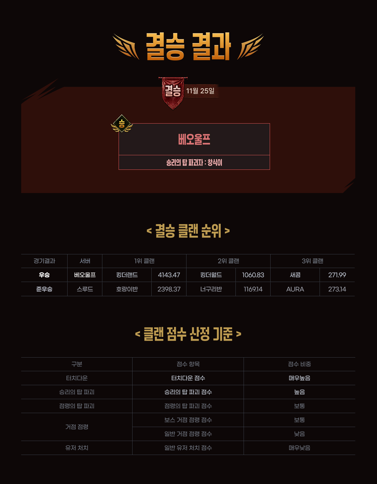 11월 25일(화) 제2회 이미르컵 결승 결과